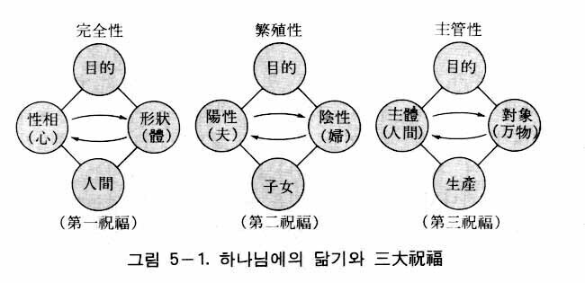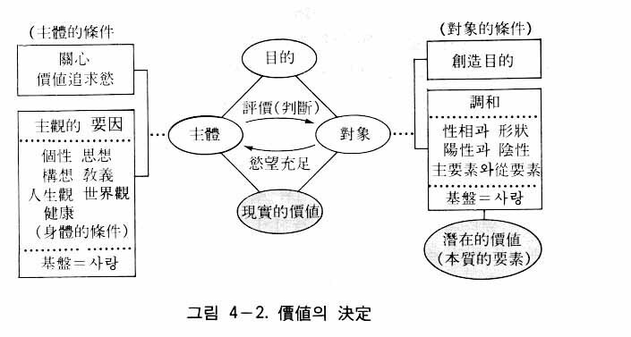 하나님은 아담을 창조하시고, 창조된 짐승과 새들을 아담에게 데리고 가셨다(창2:19~20). 아담은 이것을 보고 이름을 붙였는데, 이것은 인간이 그 때 만물에 대하여 관심을 가지고 바라보면서 認識하고 思考하였음을 의미한다. 따라서 제4, 제5번째에 다루어지는 부문은 인식론(認識論)과 논리학(論理學)이다. 그리고 아담과 해와는 3대축복을 완성해야 했는데, 그것은 창조이상의 세계를 실현하기 위해서는 인격을 완성하는 것을 의미한다. 창조이상의 세계는 이러한 인격을 완성한 사람들에 의해서, 하나님의 사랑 중심의 價値觀이 실현된 世界이다. 따라서 제6의 부문은 가치론이 된다.