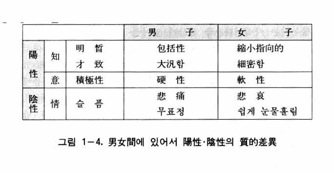 예컨대 男(夫)은 하늘(天)이요, 女(婦)는 땅입니다. 즉 주체인 하나님과 대상인 피조세계의 관계입니다. 따라서 부부의 사랑은 하나님과 피조물(인간)과의 사랑을 대표합니다. 또 男은 마음(성상(性相))으로 아내에 指示하고 女(아내)는 몸(형상(形狀))으로 행동하니, 남녀(부부(夫婦))관계는 성상과 형상으로서의 주체 대상의 관계입니다. 따라서 그런 의미에서 부부의 사랑은 우주의 모든 무형적 존재와 유형적 존재와의 사이의 사랑을 대표합니다. 또 男은 주인이요 女는 추종자입니다. 그런 의미에서 부부의 관계는 主從의 관계 즉 주체와 대상의 관계입니다. 따라서 그런 점에서 부부의 사랑은 모든 유형의 중심(주인)과 추종자간의 사랑을 대표합니다(예 : 師弟間, 정부와 백성間, 태양과 지구間, 핵과 세포질間 등).