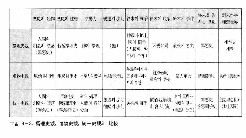 인간이 성장하면 결혼해서 창조본연의 가정을 이루게 되는데, 따라서 8번째는 가정의 規範의 學으로서의 윤리학(倫理論)을 다루게 된다. 다음은 만물주관이다. 인간은 만물을 사랑으로 주관하고 만물은 인간에게 美를 돌리게 되어 있다. 따라서 9번째는 예술론(藝術論)을 다룬다. 그런데 주관이란 자연만물의 주관 뿐만 아니라 實踐行爲 全體를 의미하는 것으로서 정치, 경제, 사회, 문화 등이 모두 주관의 개념에 포함된다. 통일사상은 아직은 정치, 경제 등을 취급하고 있지 않으나 이들의 시대적변천의 측면인 歷史는 이것을 다루고 있다. 따라서 10번째는 역사론(歷史論)이 된다.